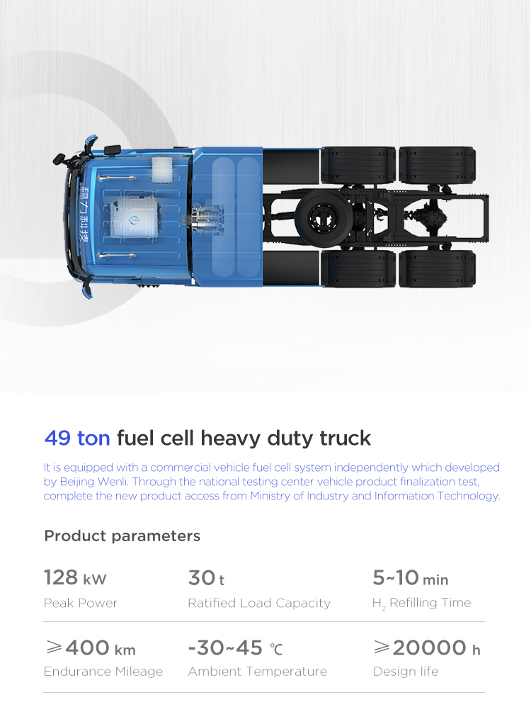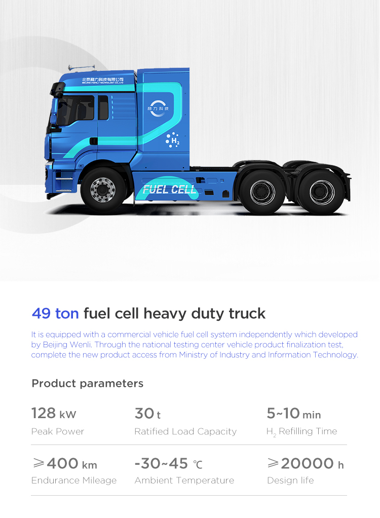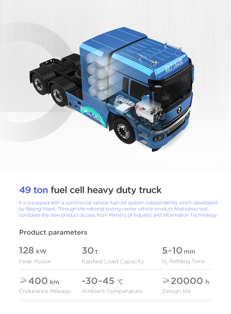 The forklift fuel cell system independently developed by Beijing Wltech can be customized. It adopts modular design with low maintenance cost, strong environmental adaptability, low noise, high reliability, high stability and other characteristics. Refilling hydrogen in 3 minutes, working for 4-6 hours, zero pollution and zero emission, and meets the requirements of “carbon peaking and carbon neutrality".