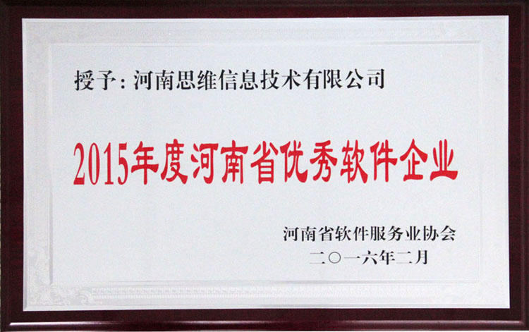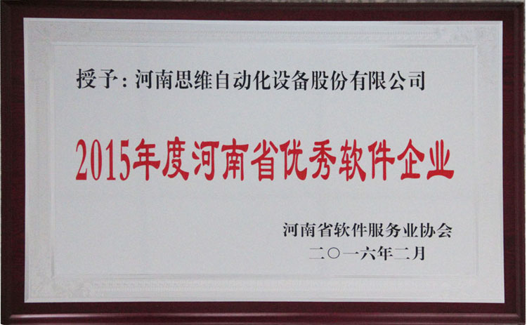 為深入貫徹落實國務院《關于印發進一步鼓勵軟件產業和集成電路產業發展的若干政策的通知》(國發〔2011〕4號)精神,促進河南省軟件和信息技術服務業快速發展,按照《河南省軟件服務業協會關于開展2015年度河南省軟件服務業評優活動的通知》的要求,近日,經企業申報,河南省軟件服務業協會組織有關專家評審,共評選出50家企業為2015年度河南省優秀軟件企業。河南思維自動化設備股份有限公司及全資子公司河南思維信息技術有限公司再度贏得“2015年度河南省優秀軟件企業”稱號。