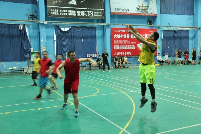 下午,球員們陸續到場開始做著準備活動。隨著裁判的一聲哨響,思維精工與思維研究院和鑫科聯隊的揭幕戰正式拉開帷幕,比賽進程中,思維精工的隊員技高一籌,全力以赴,越戰越勇,顯示了他們極佳的整體團隊配合素質,并很快在比分上取得很大的優勢。盡管思維精工隊大比分領先,但是思維研究院和鑫科聯隊的隊員們沒有沮喪和氣餒,每個隊員都做到了每分必爭、每球必搶。思維精工的隊員也絲毫不松懈,穩扎穩打,不給對手有可乘之機,最終將比分定格在了49:18。