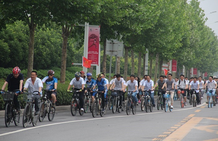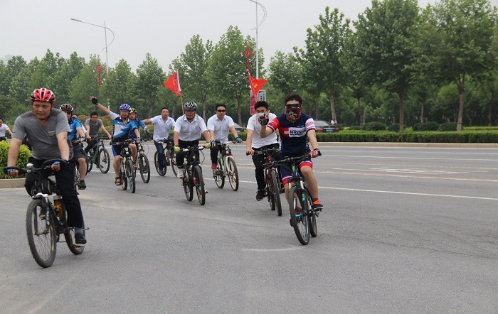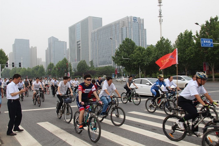 大家一路上歡聲笑語,騎行隊伍整齊有序、浩浩蕩蕩。專業騎友們作為第一方陣最先出發,裝備齊全,頗具騎行達人的酷范兒。共享單車的騎友們也不甘示弱,怡然自得,分享著信息化時代的成果。大家一邊欣賞沿途的美麗街景,一邊感受著美麗鄭州、智慧高新的飛速發展,體味綠色健康生活的美好。此刻,思維人踴躍健身塑形,用車輪丈量著青春之路,成為了城市的一道亮麗風景線。