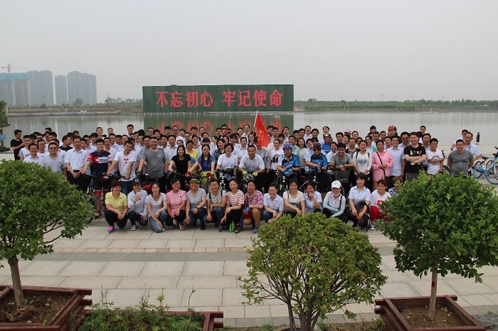 天健湖公園是騎行線路中的具有標志性的一站,作為鄭州市“城中湖”之一,它環境優美,景色宜人,參加活動的全體思維騎友在“不忘初心 牢記使命”標語前合影留念。