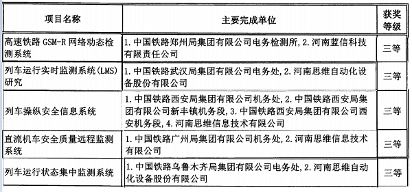 河南思維榮獲五項中國鐵道學會科學技術獎