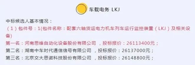 喜報!思維列控成功中標車載電務(wù)LKJ項目金額2611萬元