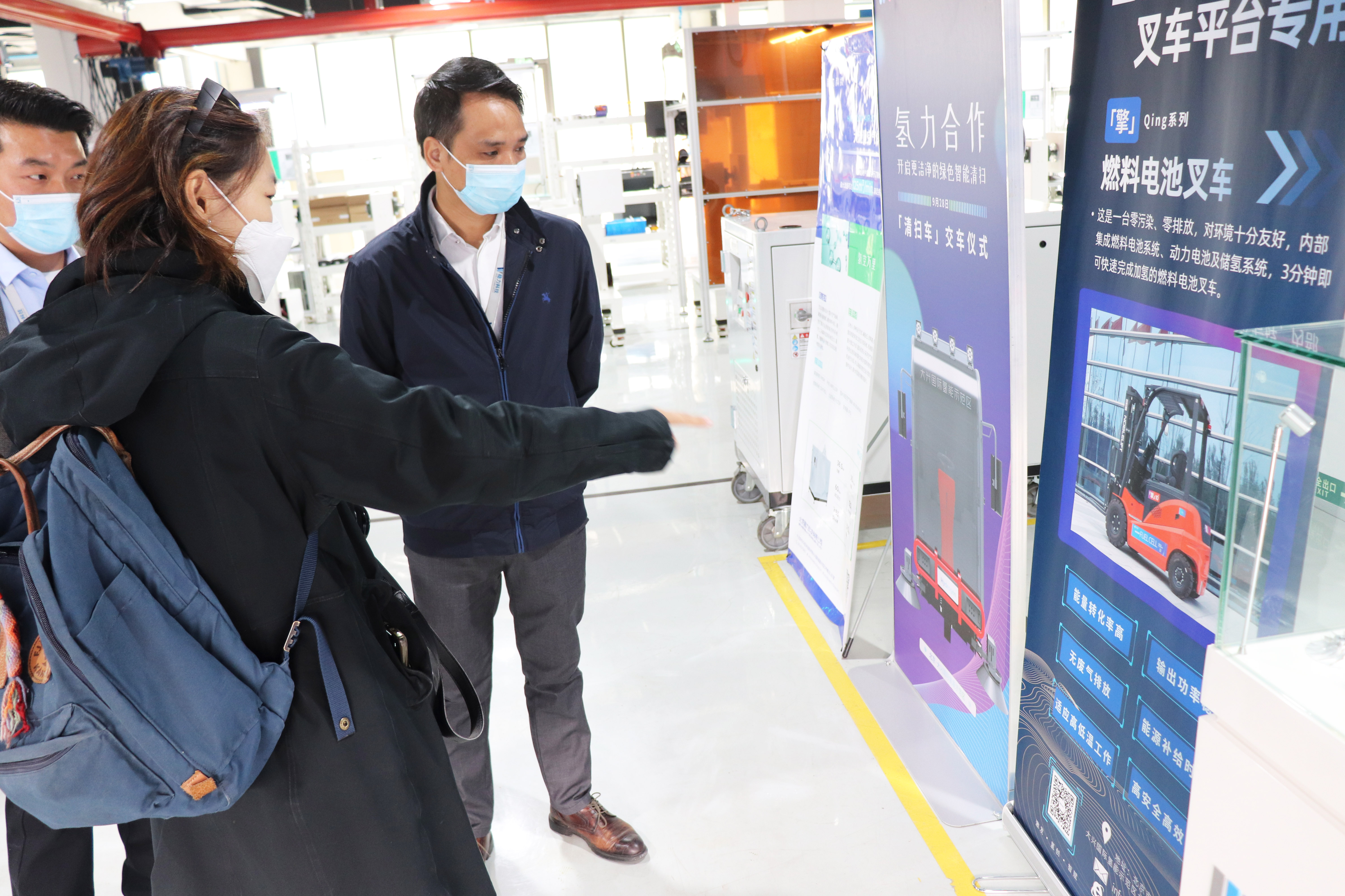 在“氫啟零碳”工廠,北京穩(wěn)力技術負責人向記者們詳細介紹了“燃料電池叉車”、“商用車燃料電池系統(tǒng)”、“大流量空氣供給系統(tǒng)”、“空壓機”等多款核心技術產(chǎn)品及其零部件,以及通過更換工裝實現(xiàn)重卡系統(tǒng)和叉車系統(tǒng)更替生產(chǎn)的柔性產(chǎn)線。
