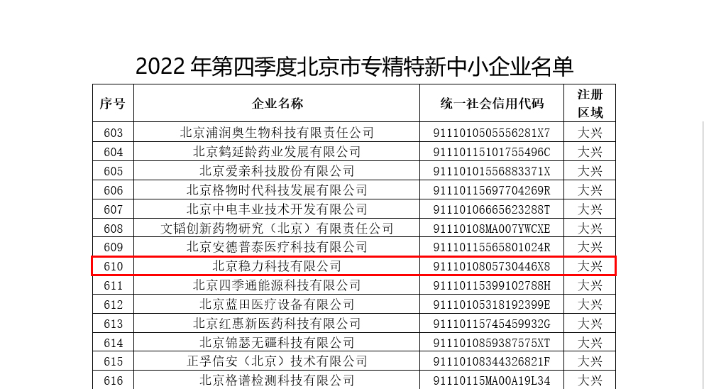 近日,北京市經濟和信息化局正式公示“2022年第四季度北京市專精特新中小企業名單”,北京穩力科技有限公司(簡稱:北京穩力)憑借專業技術實力和持續創新能力,榮獲北京市“專精特新”中小企業認定。